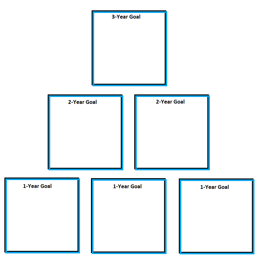 - You have 3 levels of goals: a 3-year, 2-year, and 1-year level